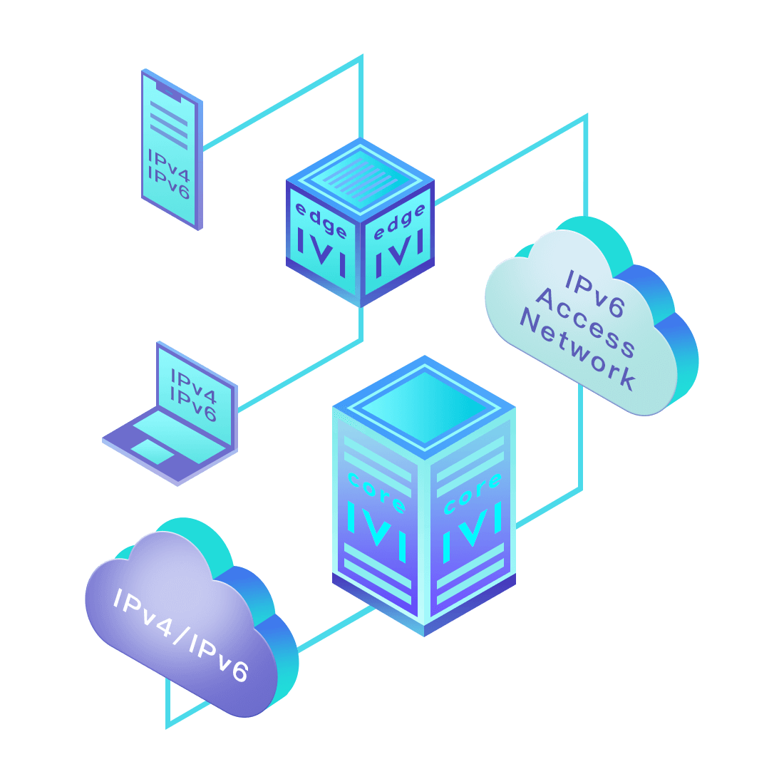 對正在進行IPv6整體升級規(guī)劃的運營商,應(yīng)用IPv6升級方案2.5,通過IVI無狀態(tài)翻譯技術(shù)和純IPv6接入網(wǎng)絡(luò),為雙棧客戶端和雙棧服務(wù)器提供連通服務(wù)。